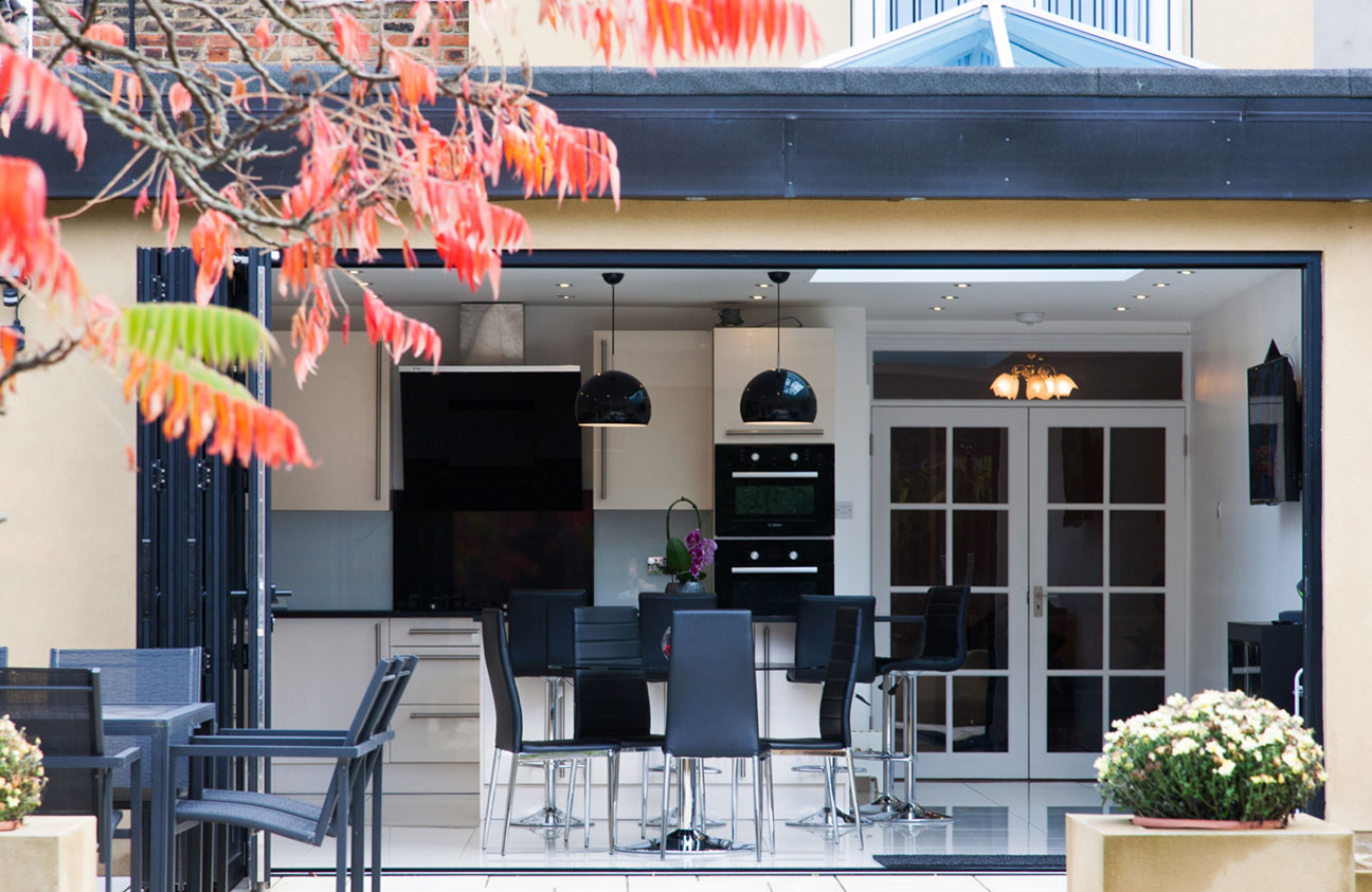 Shah and Jenny own a lovely large period home with lots of original features, which they live in with their extended family. They felt they needed more space for everyone and needed the downstairs to work for all of their individual needs. They decided to go ahead with a double storey rear extension, creating a large kitchen whilst remodelling the ground floor. The first floor extension created a large master bedroom with an en-suite and separate dressing area. This build had wow factor features such as a centrally located fireplace, which we opened up to create a fireplace serving two rooms allowing you to see straight through it. As you can see from the photos the kitchen has a very modern feel to it but is blended well with the original features of this Victorian house. Many aspects of the finish to this extension were bespoke to this house, such as skirting boards and architraves made by us to match the originals. The builder installed a large patio leading from the bi-folding doors of the kitchen, creating a feeling of the garden being an extension of the kitchen space. Shah and Jenny were very happy with the finished product and have since recommended the builder to two other family members.
